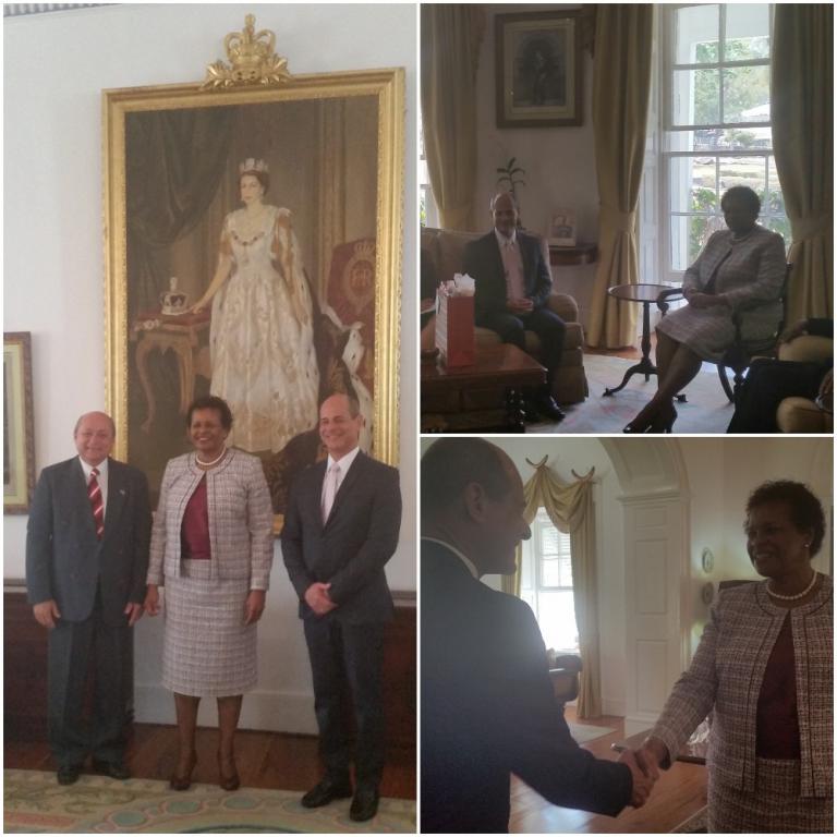 The Governor General of Barbados, Her Excellency Sandra Prunella Mason, offered a warm welcome to the delegation headed by Cuban Vice Chancellor Rogelio Sierra, accompanied by the Director of the Caribbean and Central America, Jorge Luis Mayo and the Cuban Ambassador, Francisco Fernández, meeting which served for the congratulatory message sent by Cuban President Miguel Díaz-Canel Bermúdez was extended to her for her recent appointment to that post, while it was reciprocated by the Governor General since he was also recently elected. The Vice Minister highlighted the historical bonds of brotherhood that unite Barbados and Cuba, in particular the excellent state of bilateral relations, after overcoming its 45 years of uninterrupted development, since in 1972 the first four independent Caribbean countries decided to establish diplomatic relations with Cuba. For her part, the Governor recalled her visit to Cuba in the decade of the '90s, when she met Commander in Chief Fidel Castro, an occasion in which she said she was pleasantly impressed by the work of the Cuban Revolution for the Cuban people and its potential for our region. (Cubaminrex - Embacuba Barbados).