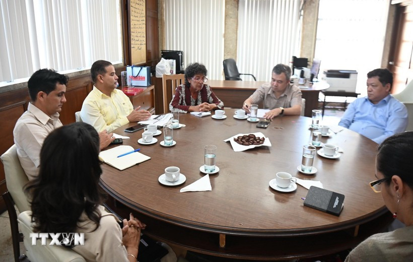Sanchez Cuellar introduced the Nhan dan delegation to historical articles, films, and photographs showcasing Vietnam’s independence struggle, particularly a photo series on President Ho Chi Minh and the special issue of Granma published on May 1, 1975, which covered the liberation of the South and the reunification of Vietnam on April 30, 1975.