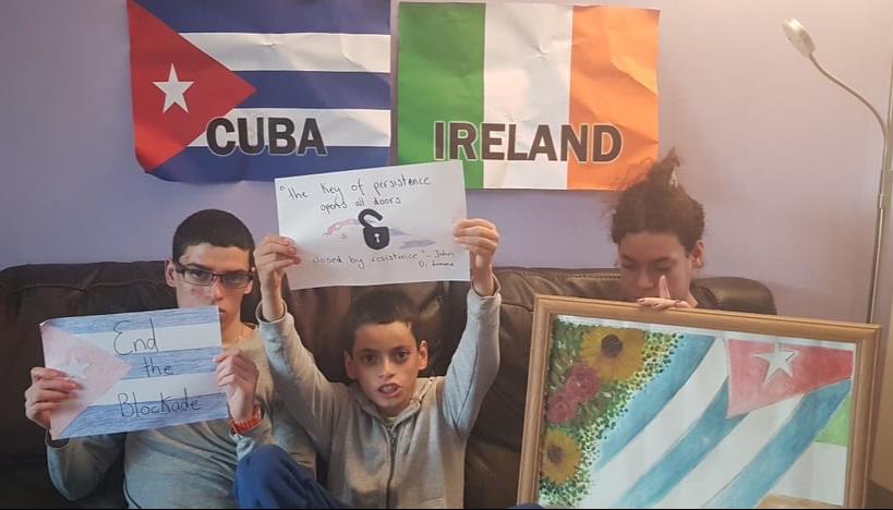 Today May Day the young Cuban-Irish Niall, Sophie and Cathal Bastible Díaz got up a little earlier, they wanted to join this unique parade, today the Cuban people will not fill the Squares as has been the custom in the last 60 years, however, each house will be a Plaza. The Cuban family in Ireland also demands an end to the blockade and joins the Workers' party.