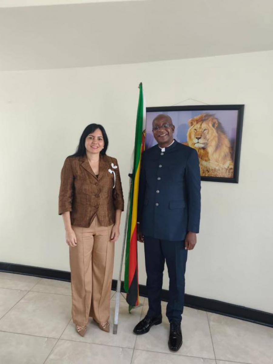 Harare, January 23, 2026 – The Minister of Justice, Legal and Parliamentary Affairs of Zimbabwe, Hon. Ziyambi Ziyambi, received the Ambassador of Cuba, Her Excellency Susellys Pérez Mesa, in an official meeting.