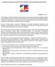 Manila, January 15, 2026. The Embassy of Cuba thanks its Filipino friends for the “Statement of Support for Cuba from the Philippine-Cuban Friendship Society (PCFS).”