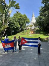 Members of the Cuban Solidarity Movement in Cambodia, Cubans residents and diplomats reaffirmed Cambodia’s support for Cuba’s demand for the end of the economic, financial and commercial blockade imposed by the United States. At the highest natural elevation of the city of Phnom Penh, Wat Non, flags of Cambodia and Cuba were raised to support the global demand for the cessation of the unjust blockade of the United States against the Island, and the exclusion from the list of sponsors of the terrorism. The vice president of the Association of Cambodian Graduates in Cuba, Bun Therun, expressed support a few hours before the United Nations General Assembly examines the draft Resolution “Necessity of ending the economic, commercial and financial blockade imposed by the United States of America against Cuba.”