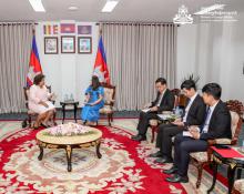 The Secretary of State of the Ministry of Foreign Affairs and Cooperation of Cambodia, Yentieng Puthirasmey, today praised in Phnom Penh Cuba's performance as pro tempore president of the Group of 77. Puthirasmey received the Cuban ambassador in the Kingdom, Liurka Rodríguez, who delivered an invitation from the Cuban president, Miguel Díaz-Canel, to Prime Minister Samdech Hun Manet to attend the G77 Leaders’ Summit on climate change, scheduled for next December in Dubai.