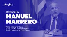 Statement by Manuel Marrero Cruz, prime minister of the Republic of Cuba to the debate of the United Nations General Assembly on financing for development in the Covid-19 era. September 29, 2020.