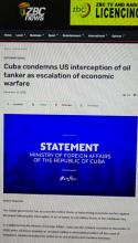 Harare, December 13, 2025 - Zimbabwe's main television network, ZBC, broadcast today the statement from the Cuban Ministry of Foreign Affairs condemning the United States' act of piracy in the Caribbean and the intensification of the economic war against the island.