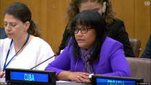 New York, October 15, 2018. In her statement at the Segment on Sustainable Development of the Second Committee of the United Nations, Biana Leyva Regueira, Third Secretary at the Permanent Mission of Cuba to the UN, called for the end of the genocidal US blockade against the island, which prevents Cubans from developing at full capacity. It is the main obstacle to the development of the island; constituting a massive, flagrant and systematic violation of the human rights of the Cuban people.