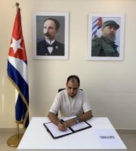 Officials of the Embassy of Cuba sign the Declaration by the Revolutionary Government of Cuba in support of Venezuela