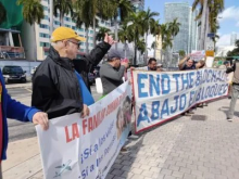 From Simón Bolívar Plaza in downtown Miami, voices from the José Martí Cultural Association, the Miami Coalition to End the Blockade, and other organizations were heard during a demonstration of Cuban residents in the USA against the latest measures announced by the US president that particularly affect Cuban families. During the gathering of Cubans, Americans, and people from other nations, the participants unanimously chanted, 'Down with the criminal US blockade of Cuba!' while holding signs with demands and requests in large letters.