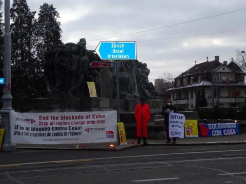 Berna, 10 de diciembre de 2020.- "No hay ningún otro país en el que se respeten la totalidad de los Derechos Humanos como en Cuba". Mensajes como este y pancartas en rechazo al bloqueo estadounidense y la subversión contra la mayor de la Antillas, fueron enarbolados esta tarde en Berna, amigas y amigos de la Asociación Suiza-Cuba, en ocasión del Día Internacional de los Derechos Humanos. También se distribuyeron folletos sobre la verdad de Cuba y señalando los impresionantes resultados en el enfrentamiento de la Covid-19, en un esfuerzo por contrarrestar la desinformación y manipulación que se difunde en los medios de comunicación y las redes sociales.