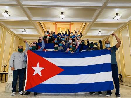 Conmueve, además, la foto divulgada por los diplomáticos de la Embajada de Cuba en ee. uu. Todos juntos, con el brazo izquierdo levantado, aguantando con fuerza una bandera cubana. Fue tomada en el recibidor del edificio que un día antes fuera blanco de un atentado terrorista. Estas fotos fueron capturadas con teléfonos personales y subidas a cada perfil de las redes de forma espontánea. Es lo lindo de vivir en esta Isla en tiempos de pandemia. En otras latitudes, las personas han tomado las calles para exigir sus derechos, a pesar del alto riesgo de contagio. Han hecho de Facebook y Twitter un escenario de denuncia. Mientras, jóvenes, adultos y ancianos de la Isla, cuentan al mundo que no hay lugar tan seguro como Cuba.