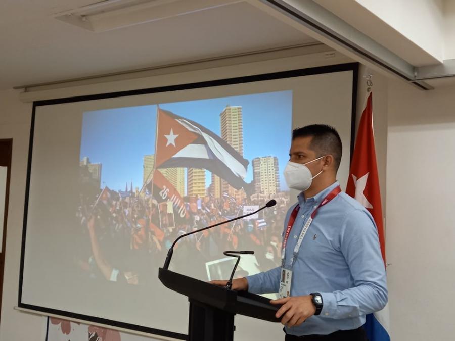 Fue un 26 de julio olímpico, con la presencia del Presidente del INDER Osvaldo Vento y otras autoridades del deporte de la Isla, de un grupo de atletas que ya concluyeron sus competiciones y del Ministro de Deporte y Juventudes de Venezuela, Mervin Maldonado. En sus palabras, el embajador Miguel Ángel Ramírez destacó que "la Revolución, por la que lucharon las generaciones que nos precedieron, se ve nuevamente asediada y atacada por los enemigos de Cuba y de Nuestra América, el gobierno de los EEUU".