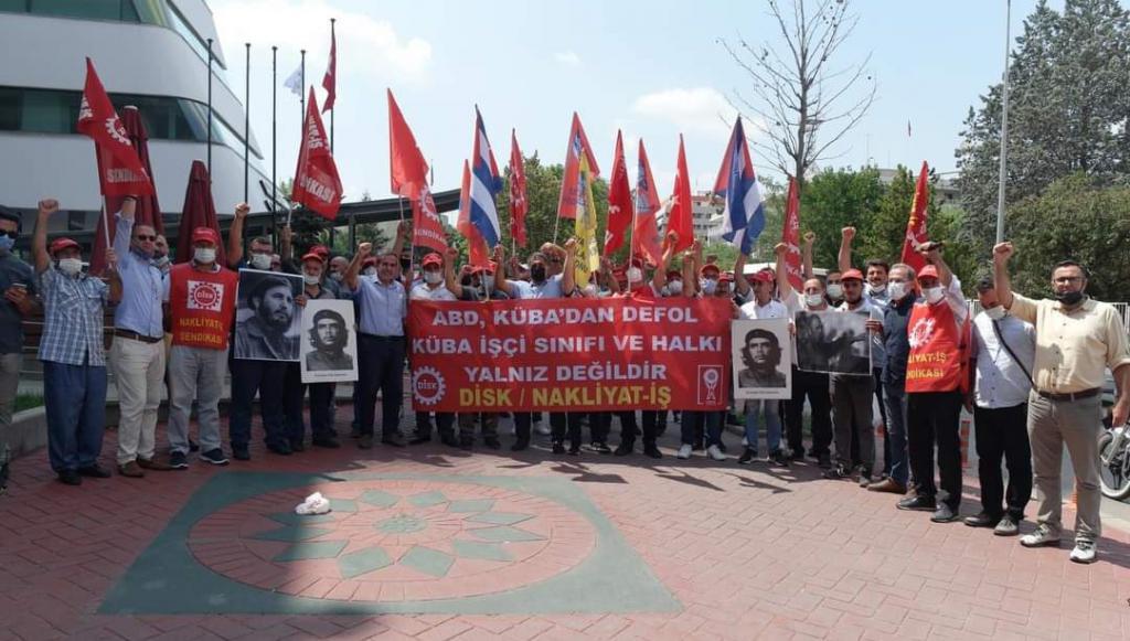 Según trascendió en un comunicado de prensa de la entidad sindical, Küçükosmanoğlu recordó frente a los manifestantes que el pueblo cubano nunca se ha inclinado ante los imperialistas estadounidenses.