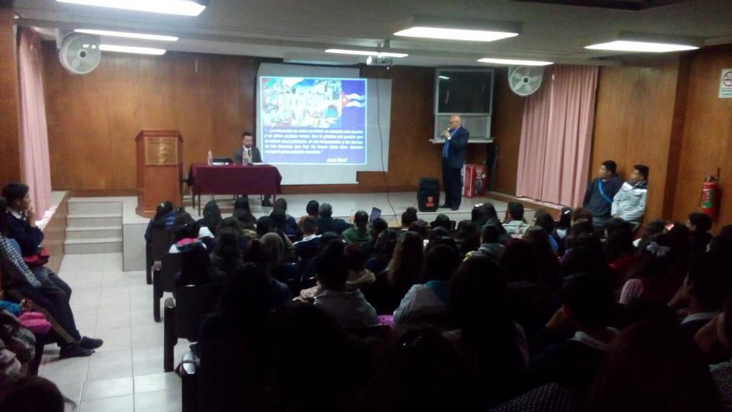 Ciudad de México, 15 de octubre de 2016.- El Centro de Estudios Tecnológico Industrial y de Servicios (CETIS) No. 55, fue sede hoy de las conferencias sobre la Educación cubana y el impacto del Bloqueo económico, comercial y financiero impuesto por Estados Unidos a Cuba, impartidas por el primer secretario Dr. José Ron Galindo y el tercer secretario Dany Tur de la Concepción, ambos de la Embajada de Cuba en México.