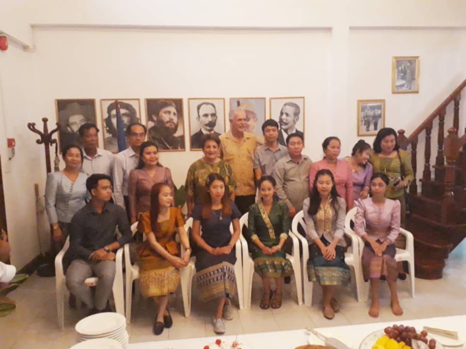 Dedicada al Aniversario del natalicio del Comandante en Jefe, Fidel Castro y a la creación del Frente Lao para el Desarrollo Nacional, el pasado 13 de agosto, se realizó hoy en la Embajada de Cuba, la actividad de despedida de los 6 estudiantes laosianos que se ganaron las becas para cursar estudios universitarios en Cuba: 4 en medicina, 1 en derecho y 1 en agronomía. En la actividad que contó con la presencia de altos funcionarios del Comité Central del PPRL, el Ministerio de Relaciones Exteriores, la Federación de Mujeres y la Unión de Jóvenes Revolucionarios, de los miembros de la Directiva de la Asociación de Amistad Lao Cuba y laosianos graduados en Cuba y de representantes de los medios de prensa y la TV nacional, además de los estudiantes seleccionados y sus familiares.