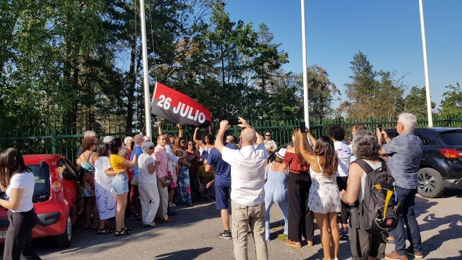 Suecia, 27 de julio de 2019. La Asociación de cubanos residentes en Suecia CubanosxCuba, organizó una actividad en La Embajada de Cuba para conmemorar el Día de la Rebeldía Nacional. La celebración comenzó con el izado de la bandera del 26 de julio en el patio de la Embajada. A continuación, la ciudadana cubana Victoria Andersson, Presidenta de la Asociación de cubanos, expresó unas palabras en nombre de la organización que representa de apoyo y compromiso con la Revolución cubana; manifestó el rechazo al bloqueo, a la aplicación del Título III de la Ley Helms Burton y a las medidas unilaterales que ha aplicado el gobierno de Donald Trump. Se congregaron en la Embajada más de 50 personas para recordar el 66 Aniversario del Moncada. El Encardado de Negocio a.i. de la Embajada de Cuba Víctor García Sánchez, habló en nombre de la Embajada.