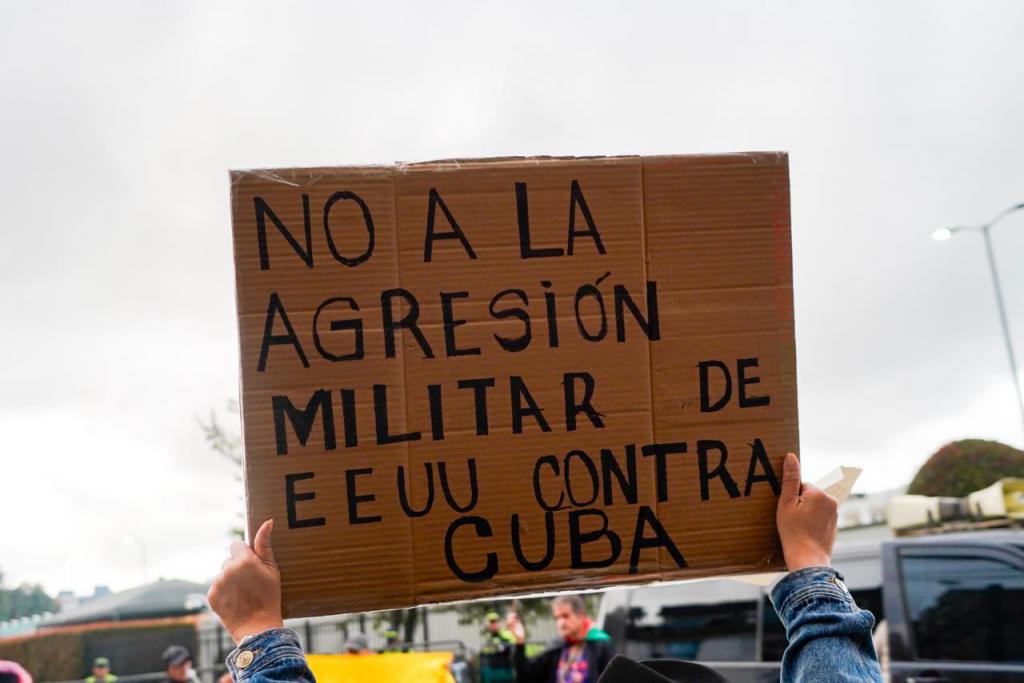 Rosario Nieto, miembro de la organización sindical Sintradistritales, comentó a Prensa Latina que asistió a la protesta para exigir al “gobierno imperialista que levante el bloqueo económico y energético que le tiene a nuestra hermana República de Cuba, ya que es genocida”.