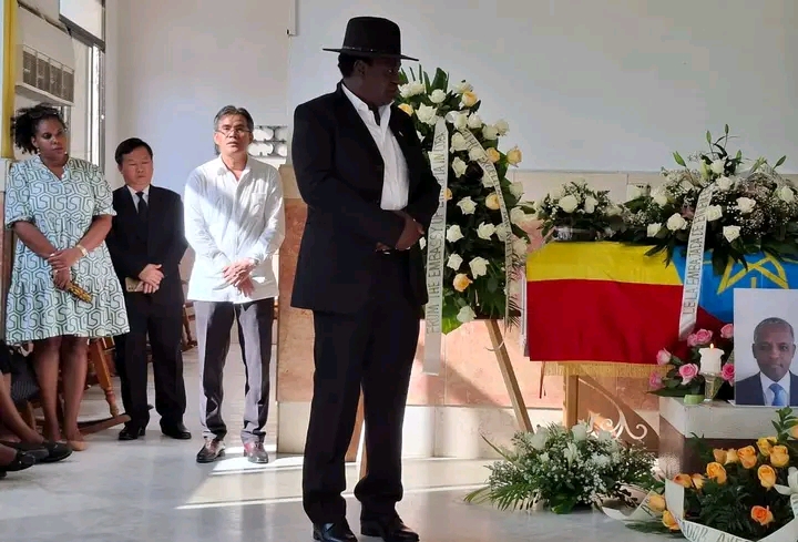 Addis Abeba, 5 de octubre de 2025.- Embajada de Etiopía en La Habana organizó un acto de despedida en honor a Su Excelencia el Embajador Ayele Lire Jijamo, quien falleció recientemente. A la ceremonia asistieron altos funcionarios del Ministerio de Relaciones Exteriores de la República de Cuba, embajadores y diplomáticos acreditados en el país, así como miembros de la comunidad etíope residente en La Habana.