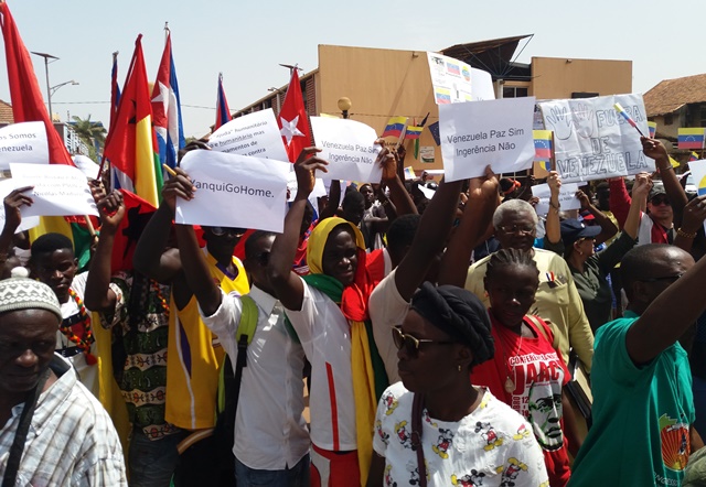 Bissau.-Convocados por la Juventud Panafricanista y la Asociación de Amistad Guinea Bissau-Venezuela, asistimos junto a los miembros de la Brigada Médica Cubana, en el acto de solidaridad con la República Bolivariana de Venezuela, efectuado al mediodía del sábado 23 de febrero en la plaza Che Guevara en la ciudad de Bissau.