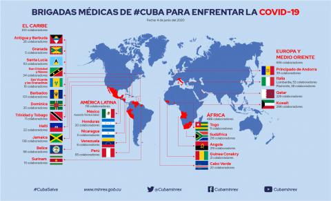 Cancillería de Cuba pone a disposición de sus lectores la actualización del mapa infográfico sobre las Brigadas Médicas cubanas "Henry Reeve" en el enfrentamiento a la COVID-19 en el mundo.