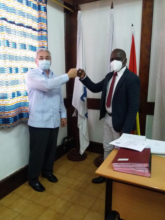 Bissau 14 mayo de 2021. – El ministro de Salud Pública de Guinea Bissau recién nombrado, Dr. Dionisio Cumbá, sostuvo un encuentro con el embajador de Cuba, Dr. C Raúl de la Peña Silva. En la ocasión el dirigente guineense resaltó la solidaridad que históricamente ha brindado Cuba a los pueblos del mundo, y en especial al de Guinea Bissau. Cumbá agradeció particularmente la colaboración que presta Cuba en la esfera de la salud a través de la Brigada Médica (BMC), la cual está conformada por el claustro de profesores de la Facultad de Medicina “Raúl Díaz Argüelles”, que este octubre cumple 35 años de contribuir a la formación de médicos para el sistema de salud del país.