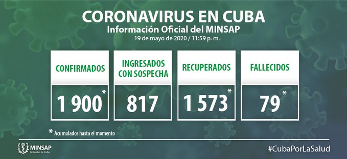 - Ciudadana cubana de 48 años de edad, residente en el municipio Playa, provincia La Habana. Contacto de caso confirmado anteriormente. Se mantienen en vigilancia 18 contactos.