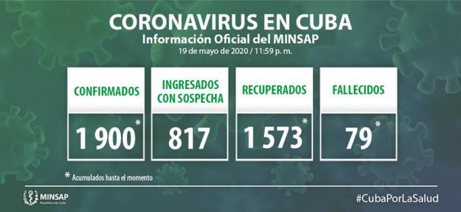 - Ciudadana cubana de 59 años de edad, residente en el municipio Centro Habana, provincia La Habana. Se desconoce la fuente de infección. Se mantienen en vigilancia 18 contactos.