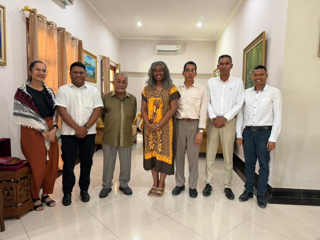 Díli, 10 de abril de 2026. La jefa de Misión diplomática cubana Alina Aldama junto al funcionario José Heredia, recibieron al líder del FRETILIN Dr. Mari Alkatiri, quien estuvo acompañado por el Secretario General Juventud de la organización partidista, Abrão Saldanha Nokosiku; el Secretario General Adjunto, Flavio da Silva; la diputada que representa esta bancada en el Parlamento Nacional, Nurima Alkatiri; y el Asistente, Antonito Amaral.
