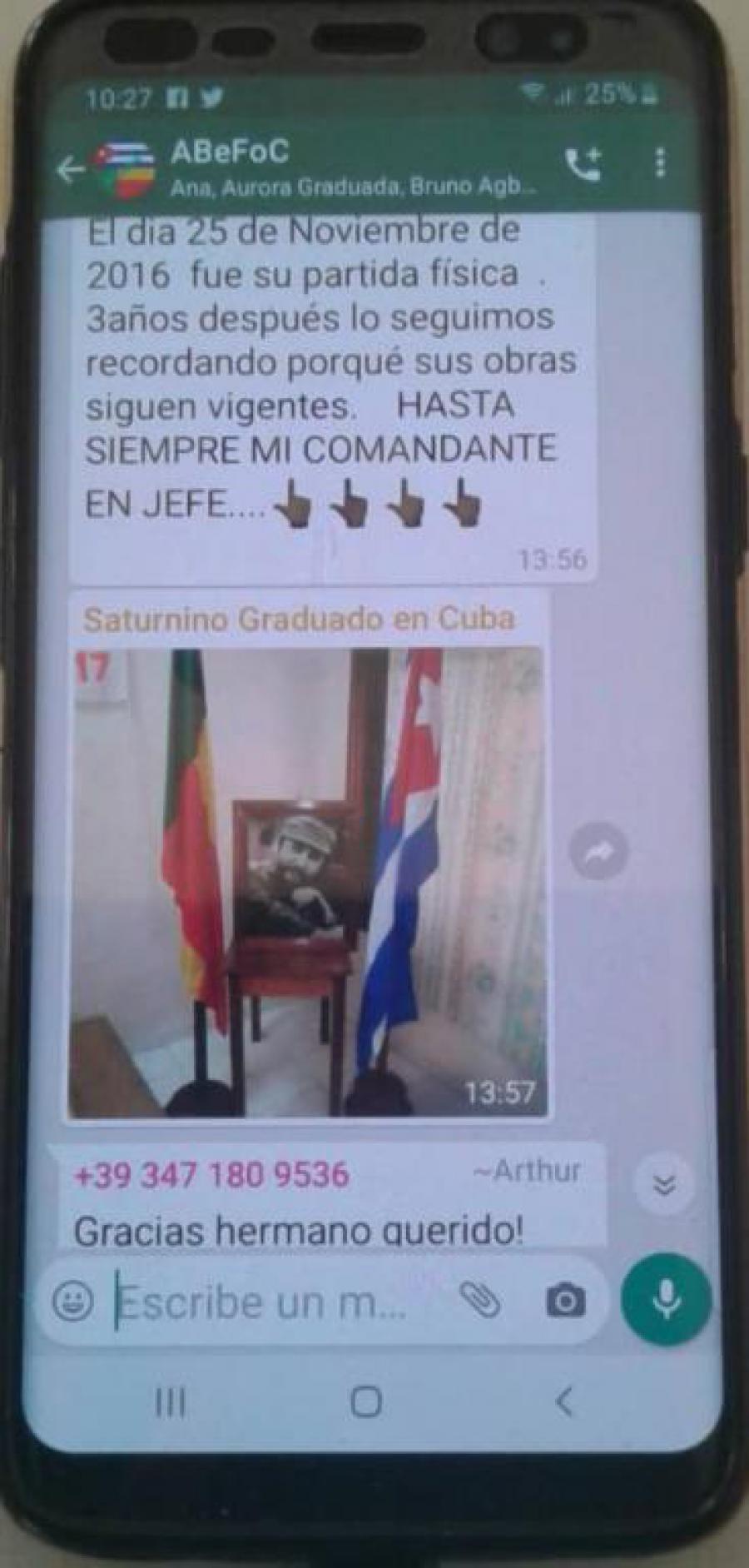 Cotonou, 25 de noviembre de 2019- Miembros de la Asociación de Benineses Formados en Cuba sostuvieron un largo y emotivo debate sobre la visa y obra del eterno comandante, Fidel Castro, en la página de Whatsapp de la Asociación.