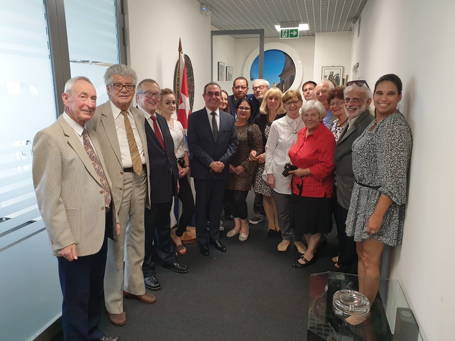Varsovia, 13 agosto de 2021. - Como parte de las actividades de la jornada para rendir homenaje al líder de la Revolución Cubana, Fidel Castro Ruz en su 95 aniversario, hoy tuvo lugar un intercambio con profesores universitarios, periodistas, residentes cubanos, miembros de la Asociación de Amistad Polonia-Cuba y el colectivo de trabajadores, en la sede de la Embajada de Cuba en Polonia.
