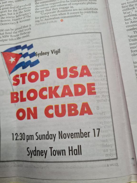 Sydney, 17 de noviembre de 2024. Amigos de Cuba en la hermosa ciudad de Sydney realizaron una vigilia contra el Bloqueo a Cuba. Varios de los presentes reafirmaron su voluntad de continuar apoyando al pueblo cubano.