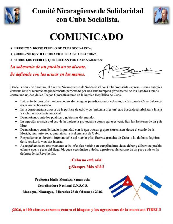 Amigos nicaragüenses solidarios con Cuba condenan incursión de elementos terroristas en aguas cubanas