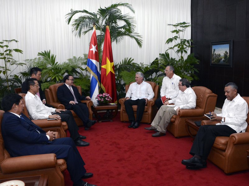 Amistoso encuentro de Díaz-Canel con miembro del Buró Político del Partido Comunista de Vietnam