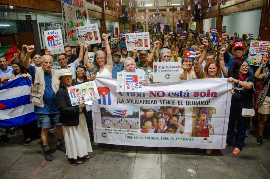 #CubaNoEstaSola corearon los presentes en emotivo y energico acto; donde multiples oradores defendieron la verdad del proceso revolucionario y su espiritu de resistencia.
