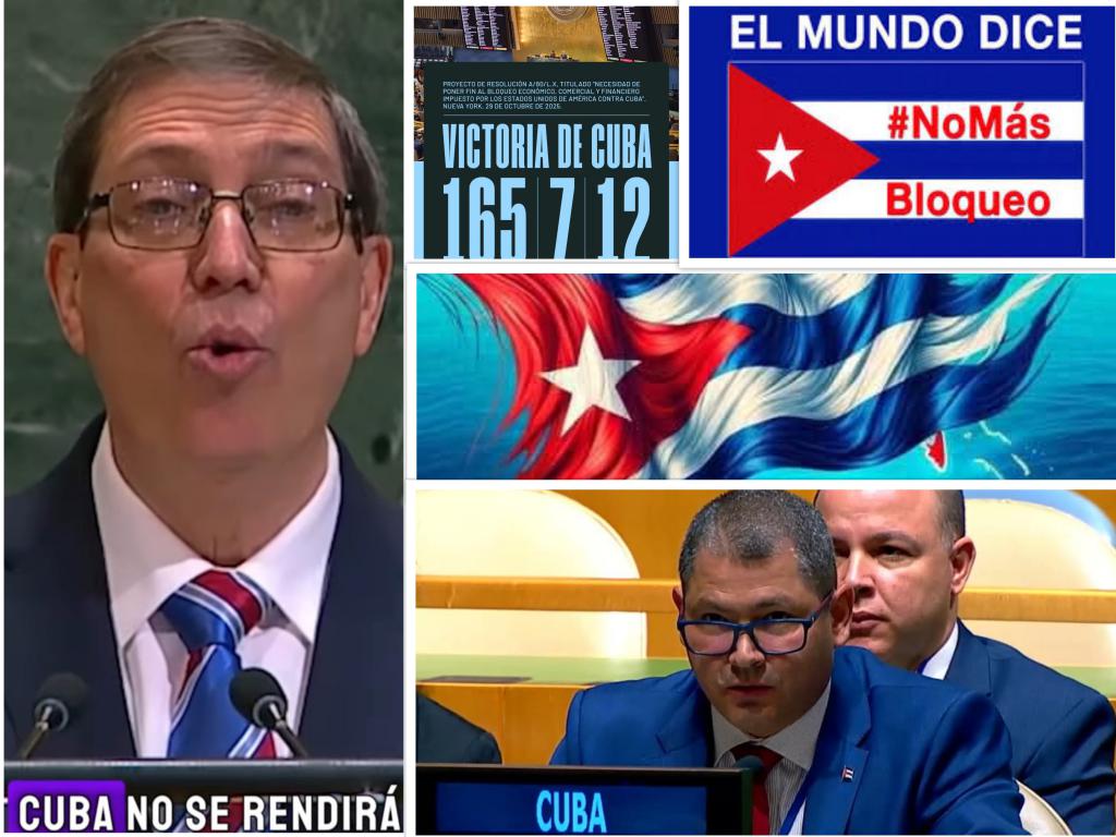 New York, EEUU. Este miércoles 29 de octubre concluyó la segunda sesión del debate general de la ONU y la votación sobre la resolución cubana “Necesidad de poner fin al bloqueo económico comercial y financiero impuesto por los Estados Unidos de América contra Cuba”. La resolución se adoptó por 165 votos a favor, 7 en contra y 12 abstenciones; estuvieron 9 países ausentes, no habilitados para ejercer el voto por distintas razones. Fue necesario nuevamente que Cuba replicara a la delegación estadounidense por las flagrantes mentiras en sus obstinados ataques, que reflejan la impotencia imperial incapaz de romper el consenso mundial por el levantamiento del bloqueo durante 33 años consecutivos.