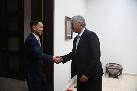 Recibió el Primer Secretario del Comité Central del Partido y Presidente de la República, Miguel Díaz-Canel Bermúdez, al embajador Hua Xin. El diplomático informó sobre la entrega a la Isla de una asistencia financiera emergente en euros valorada en 80 millones de dólares y un donativo de 60 000 toneladas de arroz en modo emergente. El Presidente de la República Popular China y Secretario General del Partido Comunista de China, Xi Jinping, aprobó una nueva ronda de ayuda a Cuba que incluye una asistencia financiera emergente valorada en 80 millones de dólares para la adquisición de equipamiento eléctrico y otras necesidades urgentes que tiene el país, y un donativo de 60 000 toneladas de arroz. Así lo informó el embajador en Cuba de la hermana nación asiática, Hua Xin, al Primer Secretario del Comité Central del Partido y Presidente de la República, Miguel Díaz-Canel Bermúdez, quien lo recibió en la tarde de este martes en el Palacio de la Revolución. El diplomático transmitió al Jefe de Estado que había recibido en la mañana de esta jornada la instrucción de su gobierno de trasladar esta información a la parte cubana. Hua Xin refirió los encuentros sostenidos en los últimos días entre las autoridades de ambos países, como las mantenidas entre el miembro del Buró Político y Ministro de Relaciones Exteriores, Bruno Rodríguez Parrilla, y el enviado especial de China para Asuntos América Latina y el Caribe, Qiu Xiaoqi. El Jefe de la misión diplomática también reseñó los encuentros que ha mantenido con el viceprimer ministro y titular de Comercio Exterior y la Inversión Extranjera, Oscar Pérez-Oliva Fraga; el ministro de Energía y Minas, Vicente de la O Levy, y el compañero Carlos Miguel Pereira, director general de Asuntos Bilaterales de la Cancillería de Cuba, donde abordaron la situación económica y el estado del sistema electroenergético nacional que enfrenta Cuba hoy debido al bloqueo, información que trasladó a su gobierno. Hua Xin comentó sobre la decisión del liderazgo de la hermana nación, de modificar las modalidades en que se estaban desarrollando los proyectos de los donativos de 200 MW en energía solar fotovoltaica y la entrega de 5 000 kit de paneles solares fotovoltaicos para viviendas aisladas, por lo que se ha determinado, en acuerdo con el Ministerio de Comercio Exterior y la Inversión Extranjera, fijar una empresa ejecutora. Al recibir al jefe de la misión diplomática, Díaz-Canel Bermúdez le extendió los más cálidos saludos en este nuevo encuentro y subrayó la intensa actividad que está realizando el embajador china en nuestro país por estos días, incluyendo el acto de entrega, este lunes, de la primera parte de un donativo de arroz aprobado anteriormente por la República Popular China. El Primer Secretario del Comité Central del Partido Comunista de Cuba y Presidente de la República ponderó el estado de los vínculos bilaterales e hizo énfasis en el desarrollo de la Fase Cuatro del programa de transformación digital que se realiza con apoyo chino, todo lo que se ha alcanzado en el proyecto para la televisión en alta definición y otras tecnologías en las que se ha avanzado. (Cubaminrex - Presidencia de Cuba)