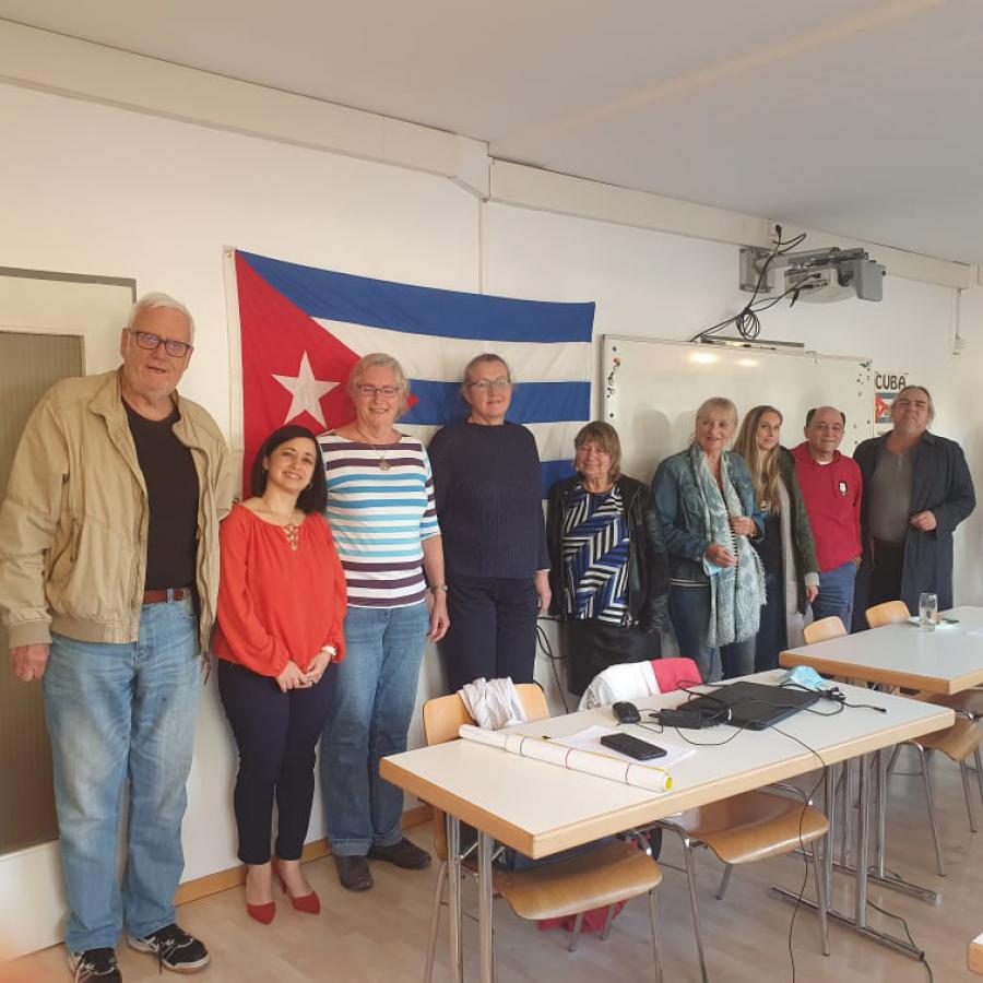 En el evento estuvo presente Yamari Pérez, Jefa de la Oficina Diplomática en Bonn, quien informó acerca de la actualidad cubana, el enfrentamiento y estrategia del gobierno cubano frente a la COVID-19, las nuevas medidas económicas y el impacto del bloqueo impuesto por EUA contra la isla.