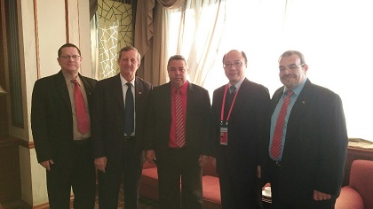 El Miembro del Buró Político del Partido Comunista de Cuba se hace acompañar por los coordinadores de Asia y Oceanía y de Suramérica del Departamento de Relaciones Internacionales del Comité Central del Partido Comunista de Cuba, Germán H. Ferrás y Basilio A. Gutiérrez respectivamente, y por el embajador de Cuba en la República Popular China, Miguel Ángel Ramírez Ramos.