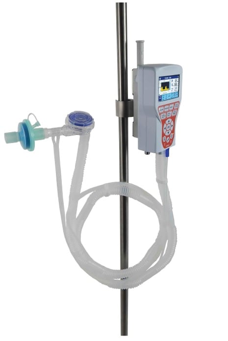 Se trata de un ventilador de emergencias y traslados, destinado a proporcionar ventilación controlada y asistida, así como para ventilación invasiva y no invasiva a pacientes. Incluye las funciones avanzadas de ventilación y RCP, opciones de medición de flujo de oxígeno, funciones de capnografía y monitorización.