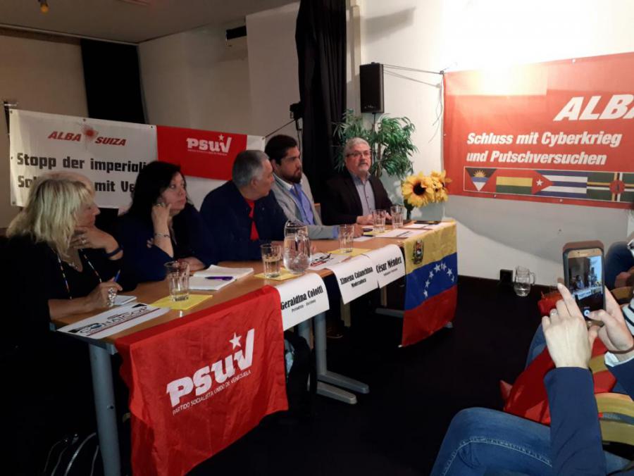 El embajador venezolano César Méndez, resaltó y agradeció la activa labor de solidaridad de ALBA-Suiza, no solo hacia Venezuela, sino también hacia todos los procesos revolucionarios y progresistas de América Latina y el Caribe. Se refirió, además, a la guerra no convencional desatada por EE.UU. y la oligarquía regional subordinada a este, contra la Revolución Bolivariana, que ha incluido medidas de bloqueo económico-financiero, manipulación mediática, ataques terroristas contra servicios públicos, entre otras acciones hostiles. Remarcó que no obstante a este asedio permanente, Venezuela está venciendo gracias a la conciencia política del pueblo y a la unión cívico-militar forjada por el Comandante Hugo Chávez Frías.