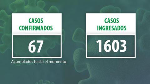 Hasta el momento se han realizado 893 muestras para detectar la COVID-19, de las cuales han resultado positivas los 67 casos acumulados hasta el momento.