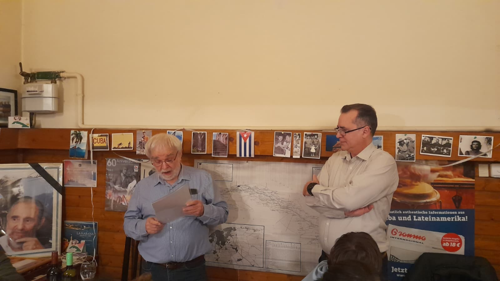 En sus intervenciones, tanto Hermann Pernerstorfer, Presidente de la ÖKG, como Pablo Berti Oliva, Embajador de Cuba en Austria, coincidieron en destacar el excelente estado de la cooperación entre la organización solidaria y la Embajada. Subrayaron que este fructífero vínculo es un pilar fundamental para el trabajo de denuncia del bloqueo económico, comercial y financiero contra Cuba y para la promoción de la verdad sobre el país caribeño en Austria.