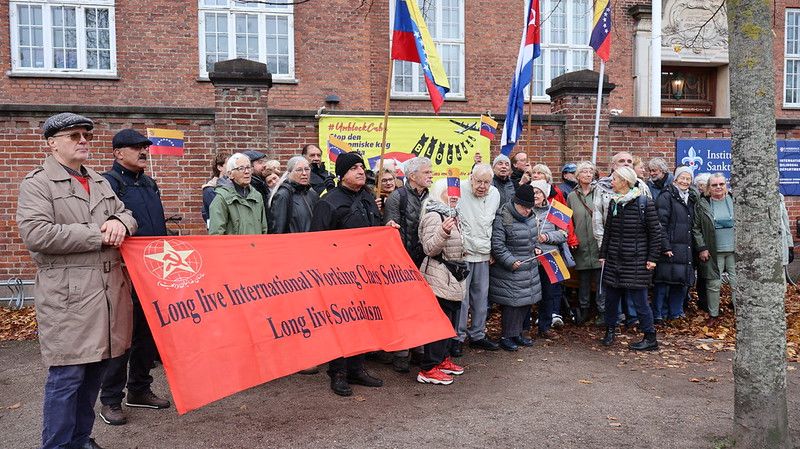 En la mañana de hoy, en Copenhague, la Asociación de Amistad Dano-cubana, junto a partidos comunistas y asociaciones latinoamericanas se manifestaron frente a la Embajada de EE.UU. para exigir manos fuera de Venezuela y el levantamiento del bloqueo contra Cuba.