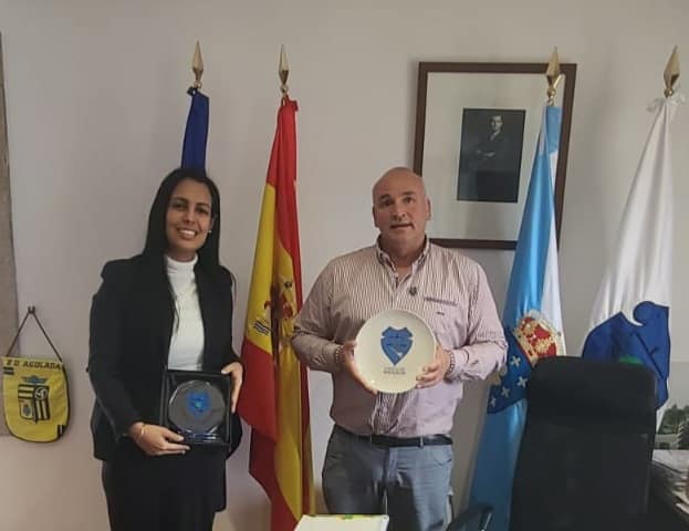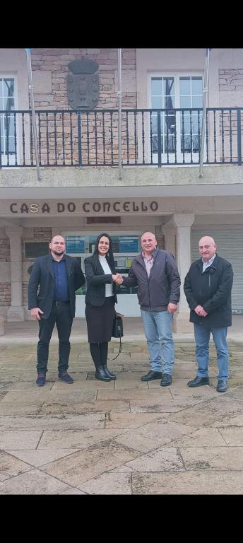 Agolada, Galicia 23 de enero de 2023: La Cónsul General en Galicia, Asturias y Cantabria, Ingrid Izquierdo Sterling realizó una visita al Ayuntamiento de Agolada, Galicia, donde fue recibida por Luis Calvo, alcalde de la ciudad y Pedro Garcia, concejal de obras. Durante su estancia, la representante cubana tuvo la posibilidad de conocer el Ayuntamiento y recorrer parte de la ciudad, donde constató los excelentes resultados de la gestión del Concello, así como proyectos futuros en obras sociales y para el desarrollo socioeconómico del territorio.