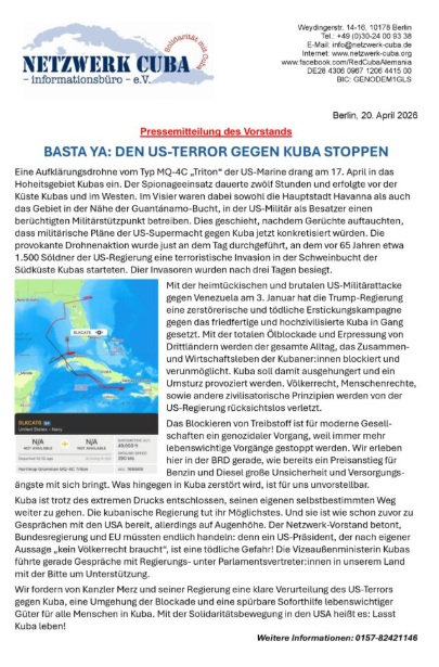 Comunicado de prensa de la Presidencia de la Red de Solidaridad con Cuba en Alemania