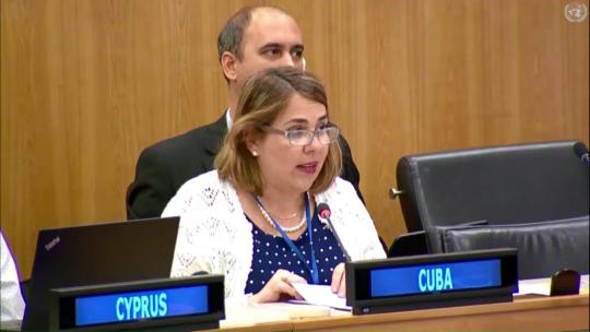 NUEVA YORK, 11 de octubre de 2018.- Rechazamos las prácticas unilaterales, discriminatorias y proteccionistas en el comercio que obstaculizan los esfuerzos de desarrollo de nuestros países y socavan las bases del multilateralismo; así como la aplicación de medidas económicas coercitivas unilaterales como medio de ejercer presión política y económica sobre los países en desarrollo, incompatibles con el derecho internacional y la Carta de las Naciones Unidas y de las cuales el bloqueo estadounidense a la isla es el mejor ejemplo; afirmó la Representante Permanente Alterna de Cuba, Embajadora Ana Silvia Rodríguez Abascal en el Segmento sobre cuestiones de políticas macroeconómicas de la Segunda Comisión de las Naciones Unidas.