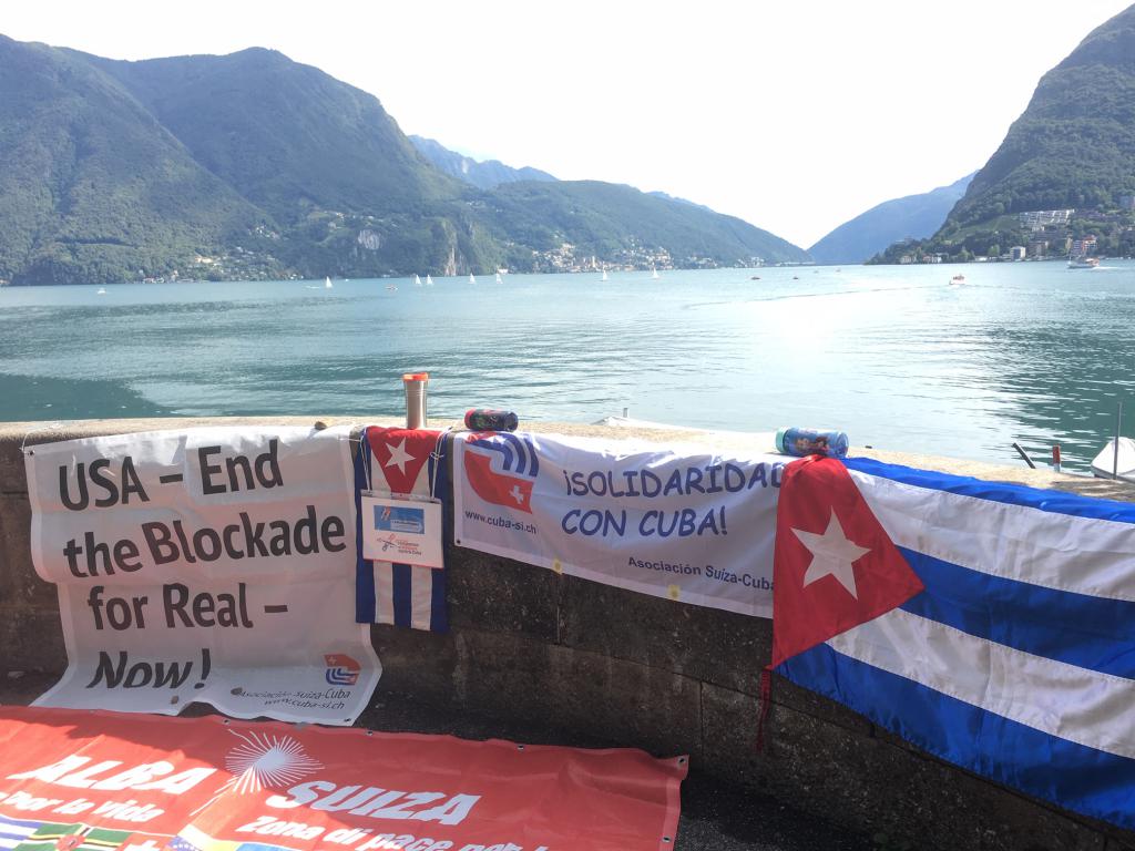 En esta ocasión, desde las orillas del Lago Maggiore en Lugano y frente al edificio de la sede de Radio y Televisión Suiza SRF en Basilea, miembros de las Asociaciones Suiza-Cuba y Alba-Suiza pidieron el fin de los injustos bloqueos y las injuriosas campañas mediáticas lideradas por Washington.