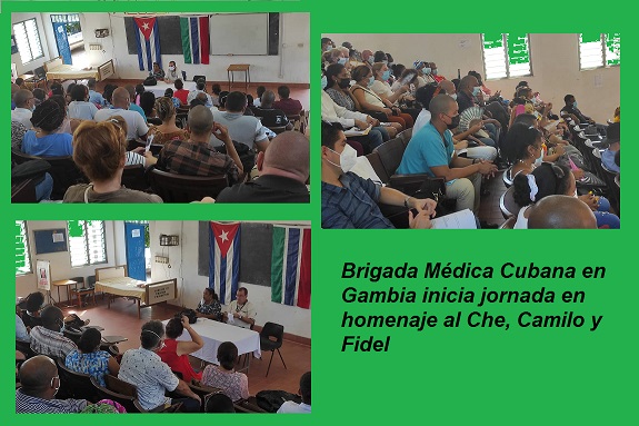 Banjul, 6 oct.- La Brigada Médica Cubana (BMC) en Gambia dio por iniciada hoy una prolongada e intensa jornada en homenaje al Guerrillero Heroico Ernesto Che Guevara, al Comandante Camilo Cienfuegos, y al líder histórico de su Revolución, Fidel Castro, en un acto celebrado en esta capital.