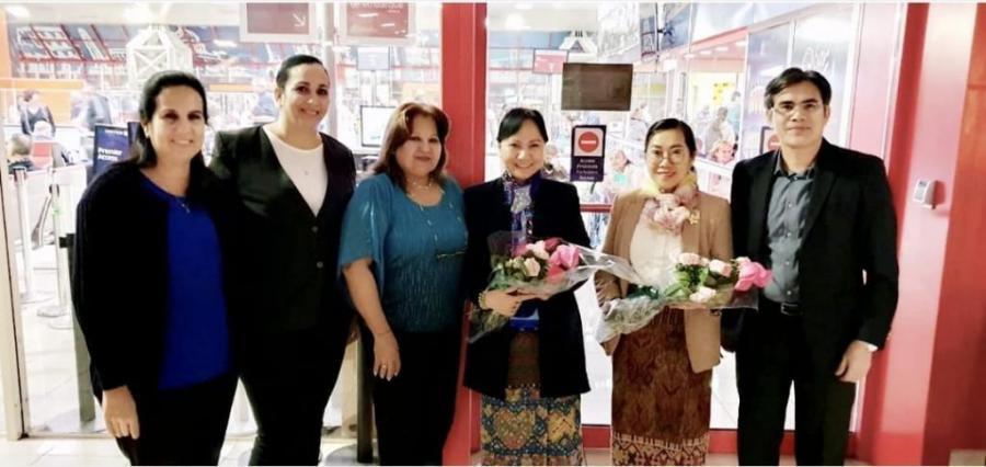 Vientiane, 1 de febrero de 2023. La Cra. Inlavanh Keobounphanh, miembro del del Comité Central del Partido Popular Revolucionario Lao, y Presidenta de la Unión de Mujeres Lao, recibió un cálido recibimiento en La Habana, por parte de su homóloga Cra. Teresa Amarelle Boue, Presidenta de la Federación de Mujeres Cubanas .