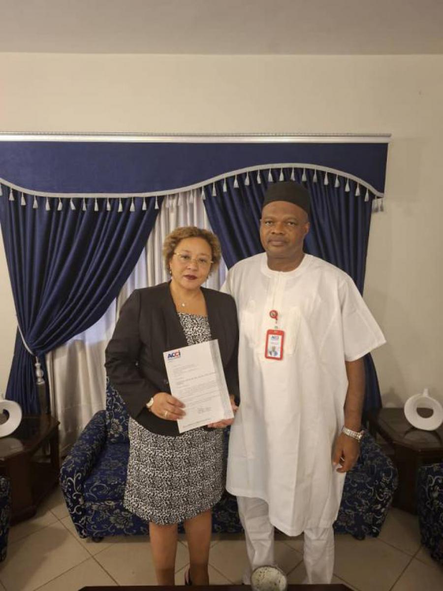 La nota fue entregada por el Director General de la Cámara de Comercio de Abuja Agabaidu Chukwuemeka, quien transmitió a la Embajadora un mensaje de profundo pesar y solidaridad, así como el respaldo institucional de la Cámara y de sus miembros ante este doloroso acontecimiento. En sus palabras, expresó el acompañamiento fraterno a las familias de las víctimas, al pueblo cubano y a su representación diplomática en Nigeria, reiterando el compromiso de la Cámara con los valores de la paz, la justicia y el respeto al derecho internacional.