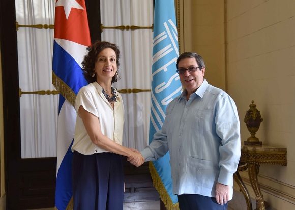 Bruno Rodríguez Parrilla, ministro de Relaciones Exteriores de Cuba, recibió este jueves a la directora general de la Organización de Naciones Unidas para la Educación, la Ciencia y la Cultura (UNESCO), Sra. Audrey Azoulay, quien realiza una visita oficial a nuestro país.